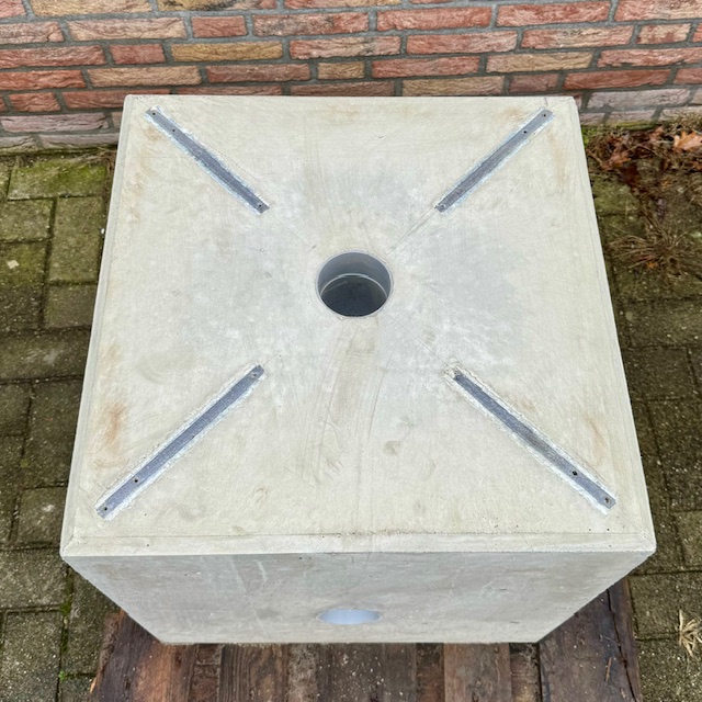Universeel betonblok 550x550x600mm met kabeldoorvoer 80mm en glijrails. Universeel toe te passen met hamerkopbouten M12. Eenvoudige kabelinvoer doormiddel van de pvc invoer aan de zijkant. Gewicht 425KG
